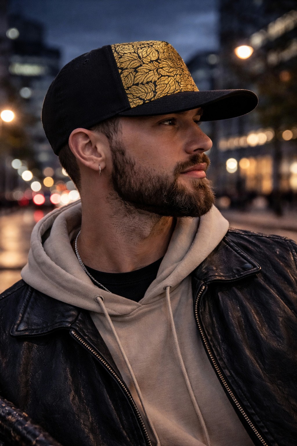 5panelová kšiltovka s ohnutým kšiltem a výrazným čelním panelem „Černý list“. Čistá silueta, pevná konstrukce, detail, který vynikne zblízka i na fotce.