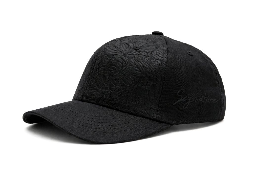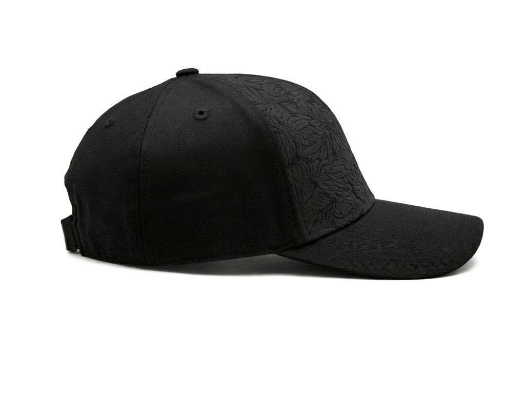 6panelová kšiltovka s ohnutým kšiltem a brokátovým čelním panelem „Černý list“.