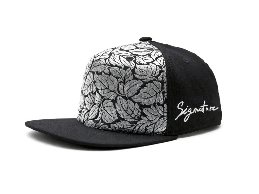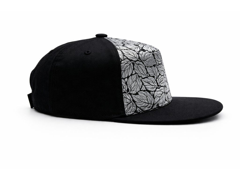 5panelová kšiltovka s rovným kšiltem a brokátovým čelním panelem „Stříbrný list“.