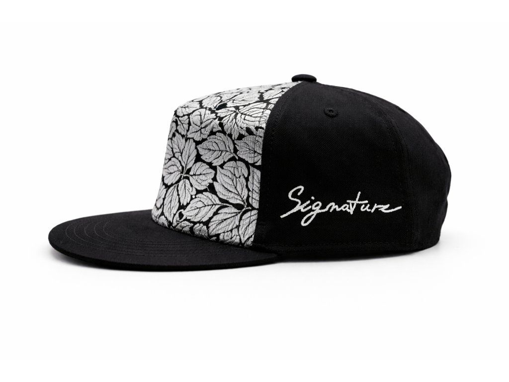 5panelová kšiltovka s rovným kšiltem a výrazným čelním panelem „Stříbrný list“. Čistá silueta, pevná konstrukce, detail, který vynikne zblízka i na fotce.