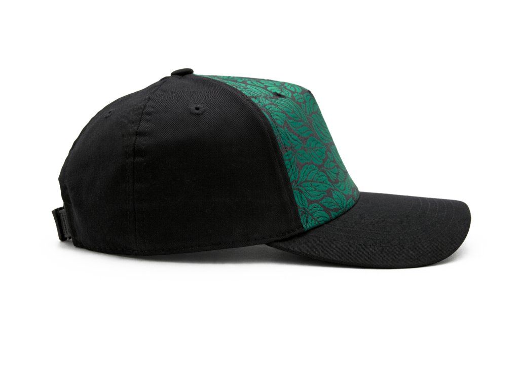 5panelová kšiltovka s ohnutým kšiltem a brokátovým čelním panelem „Zelený list“.