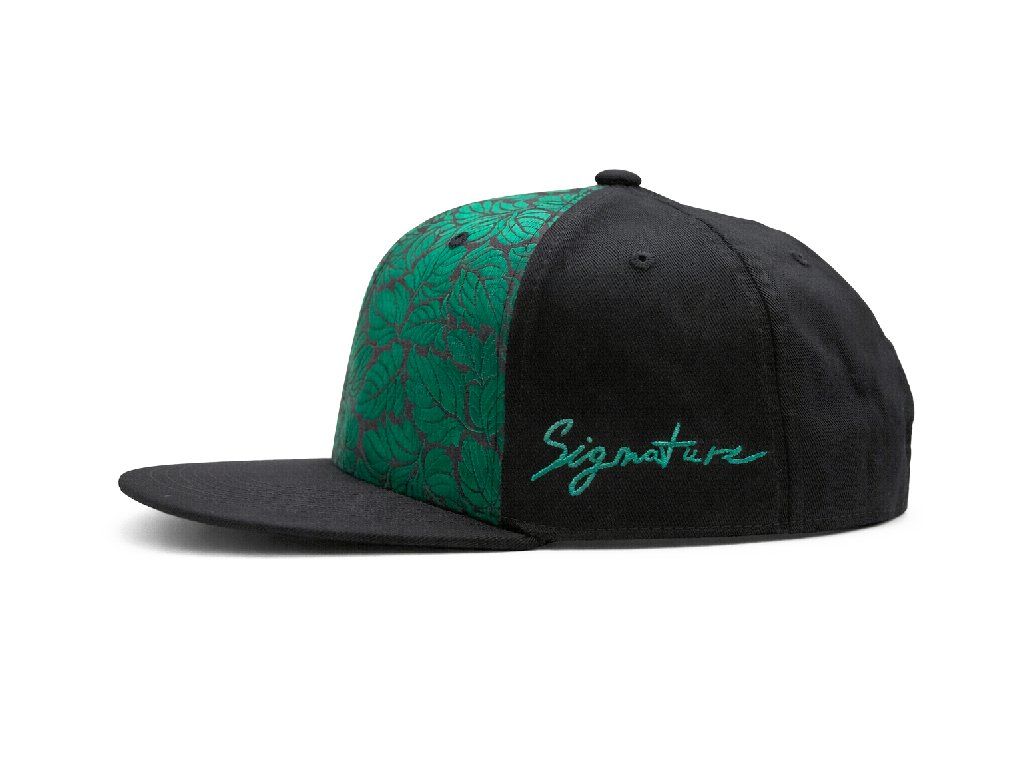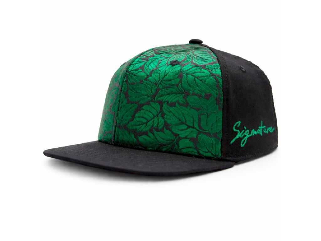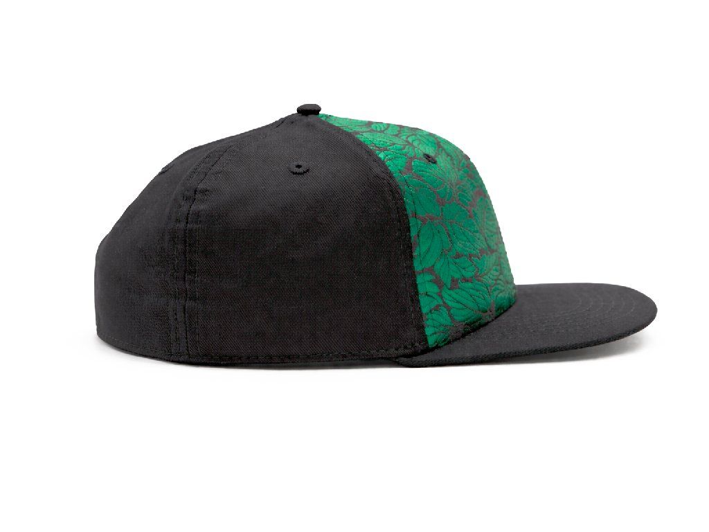6panelová kšiltovka s rovným kšiltem a brokátovým čelním panelem „Zelený list“.
