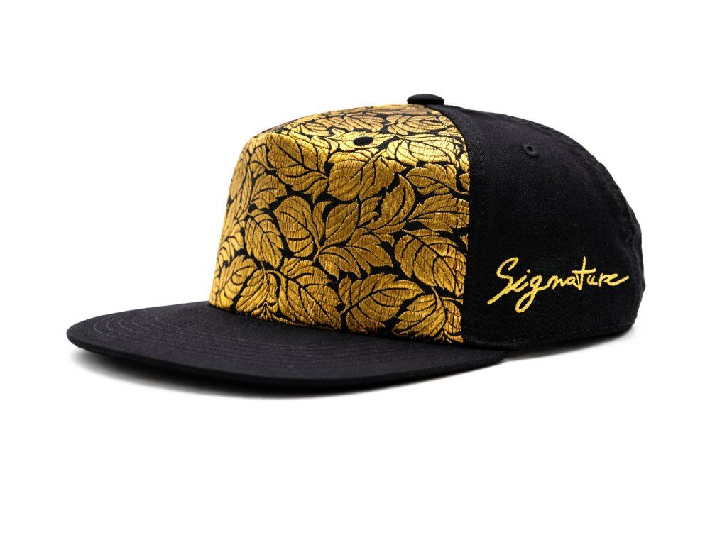5panelová kšiltovka s rovným kšiltem a brokátovým čelním panelem „Zlatý list“.