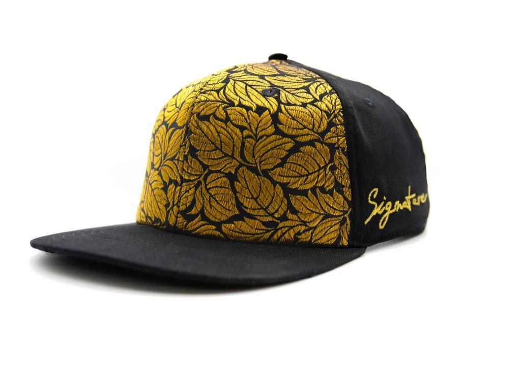 6panelová kšiltovka s rovným kšiltem a brokátovým čelním panelem „Zlatý list“.
